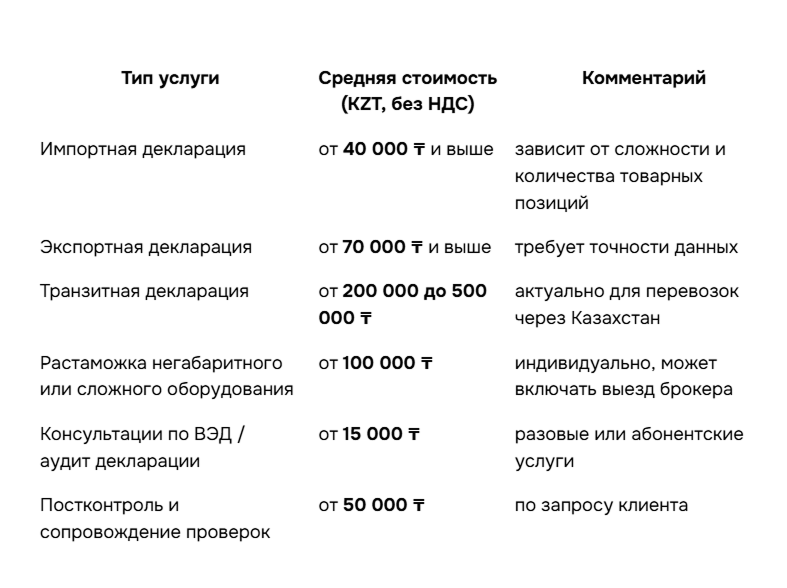 Прежде чем говорить о стоимости, важно понимать, что именно делает брокер. В Казахстане услуги сертифицированного брокера включают: